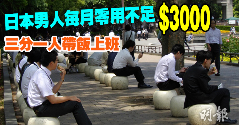 日本公司男性職員的每月零用錢金額,已經跌到不足2900港元,是1979年至今排名第三低的水平,有三分之一的人帶飯盒上班。