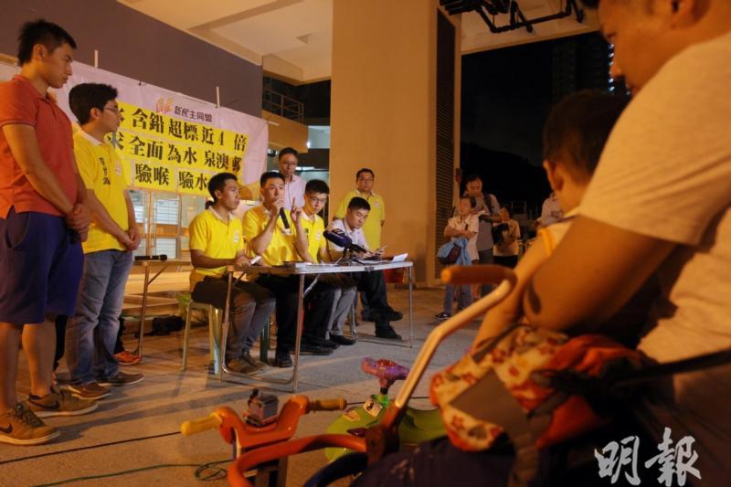 食水含鉛量超標風波持續,沙田區水泉澳邨亦發現有食水樣本含鉛量超標,新民主同盟在水泉澳邨4座樓抽取20戶居民的食水樣本化驗,結果顯示,20個水樣本中,有3個樣本含鉛量超標,其中一個更超出世衛標準近4倍。