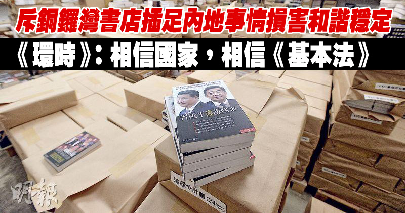 內地官媒《環球時報》發表評論員文章,提到近日本港銅鑼灣書店股東李波失蹤事件,直指銅鑼灣書店損害內地保持和諧穩定重大利益,又指摘事件被炒作。