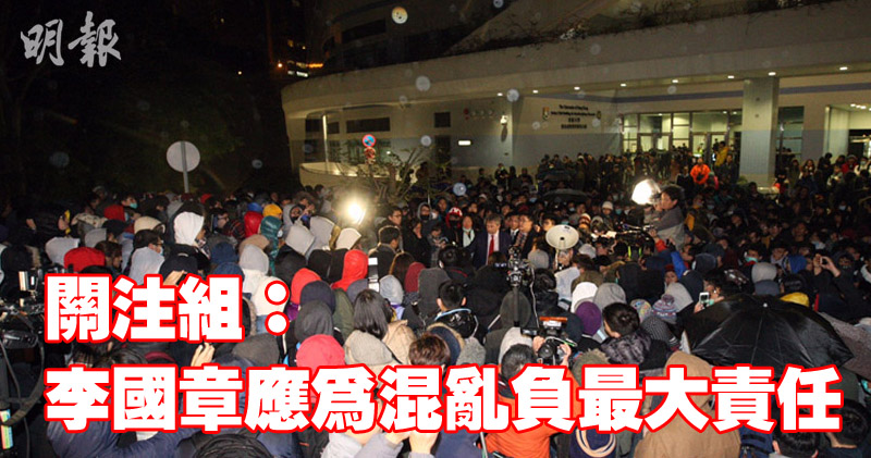 李國章昨晚首次主持港大校務委員會會議,會議後出現混亂場面,校長馬斐森凌晨離開時表示對學生感失望。港大校友關注組今發聲明指,李身為校委會現制度下的唯一發言人,竟在校長即將公開發言時,要大批警員護送他離開校園,直接刺激學生的對立情緖,認為李對引發昨晚港大的混亂場面應負上最大責任。
