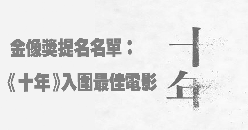 「第35屆香港電影金像獎頒獎禮」今日公布提名名單,備受關注及談論的獨立電影《十年》入圍最佳電影,其餘4部入圍電影包括《五個小孩的校長》、《踏血尋梅》、《葉問3》及《智取威虎山》。