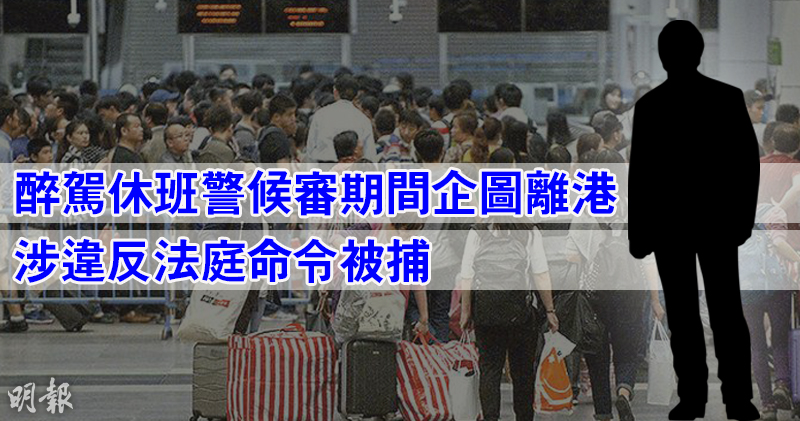 一名休班警去年涉醉駕及沒有第三未保險駕駛被捕,他昨日涉嫌在審訊完結前企圖離港,違反法庭命令,再被警方拘捕。
