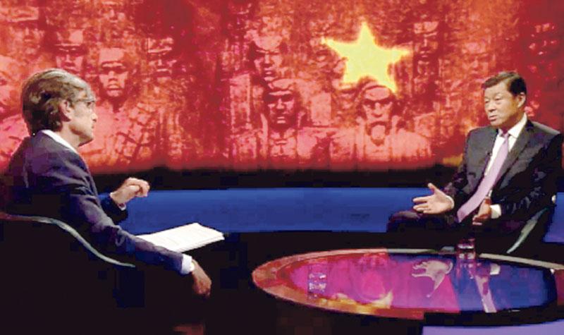 【明報專訊】中國駐英國大使劉曉明在北京閱兵當日接受BBC專訪,就閱兵、股市和中國威脅論等敏感話題,與BBC主持人激辯。主持人質疑中國閱兵令人生畏,劉曉明稱只是向世人宣示捍衛和平的決心。在被質疑中國一些記者和基金經理因涉嫌製造股市恐慌被逮捕令西方人感到震驚時,他反駁稱中國享有言論自由,但那些人違反了法律。