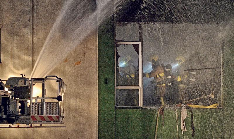 【明報專訊】釀成1死9傷的九龍灣迷你倉四級火,燃燒至今凌晨1時許已達38小時仍未受控,火勢更由大廈3樓蔓延至4樓,消防昨晚稱難以估計何時可救熄大火。對於高級消防隊長張耀升殉職,消防表示會調查是否涉及有人員指揮失當,強調當時張耀升奉召到火場拖喉救火,屬正常程序,又否認使用鼓風機會令火勢加劇。